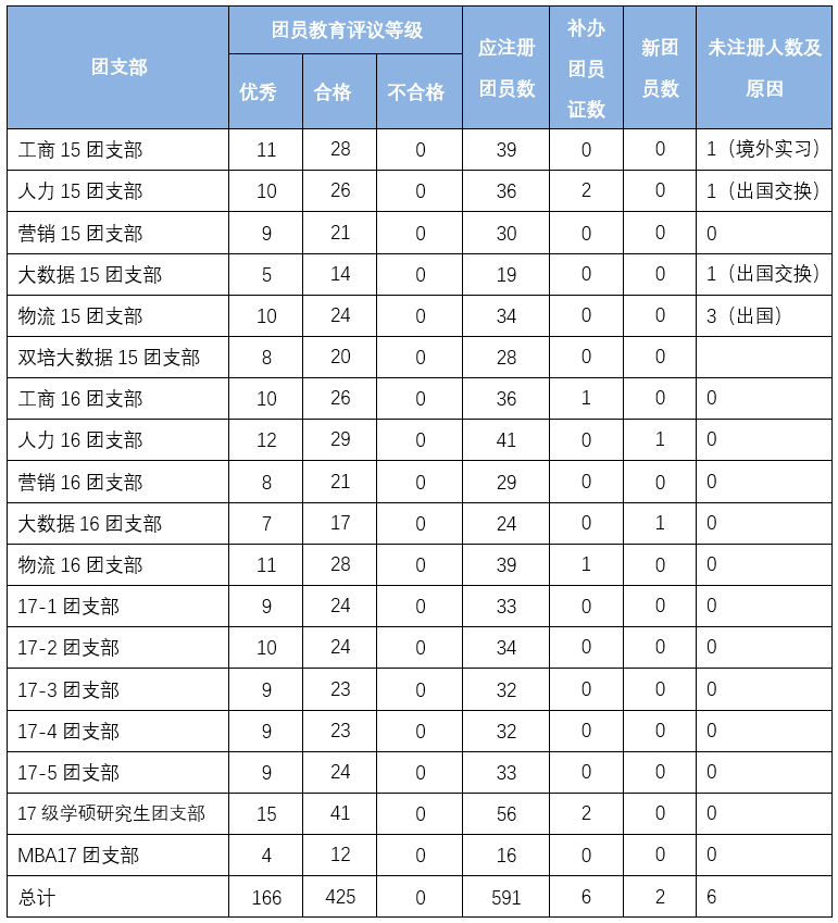 根据各支部团员教育评议情况,15VIP太阳集团团委组织部开展团员团籍注册工作,对于评议等级“优秀”、“合格”的团员进行团籍注册,加盖注册专用印章,对于评议等级为“不合格”的团员不予注册。以下为15VIP太阳集团各支部2018年上半年团员教育评议及团员团籍注册情况: